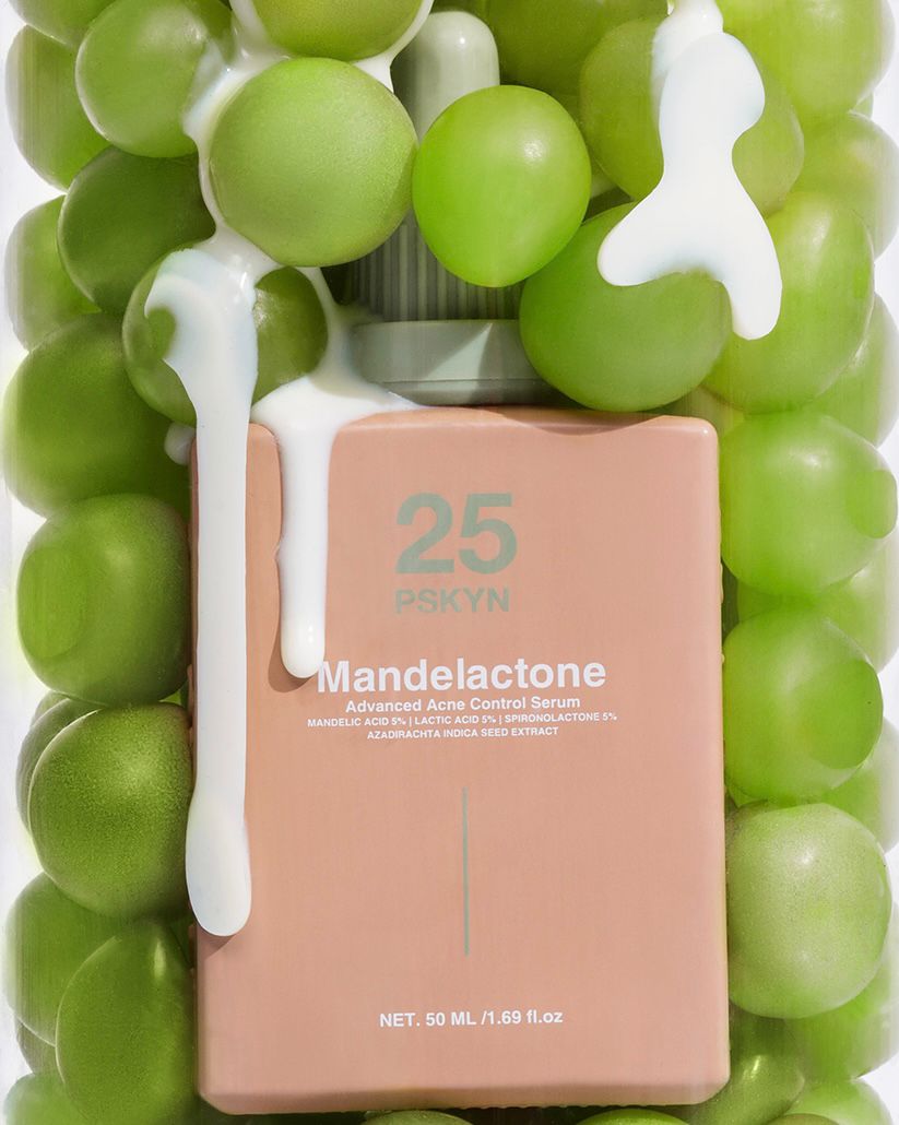 Apply a sufficient amount of the Mandelactone serum all over your face, focusing most on your areas of concern. Wait about 60 seconds for serum to dry into your skin.