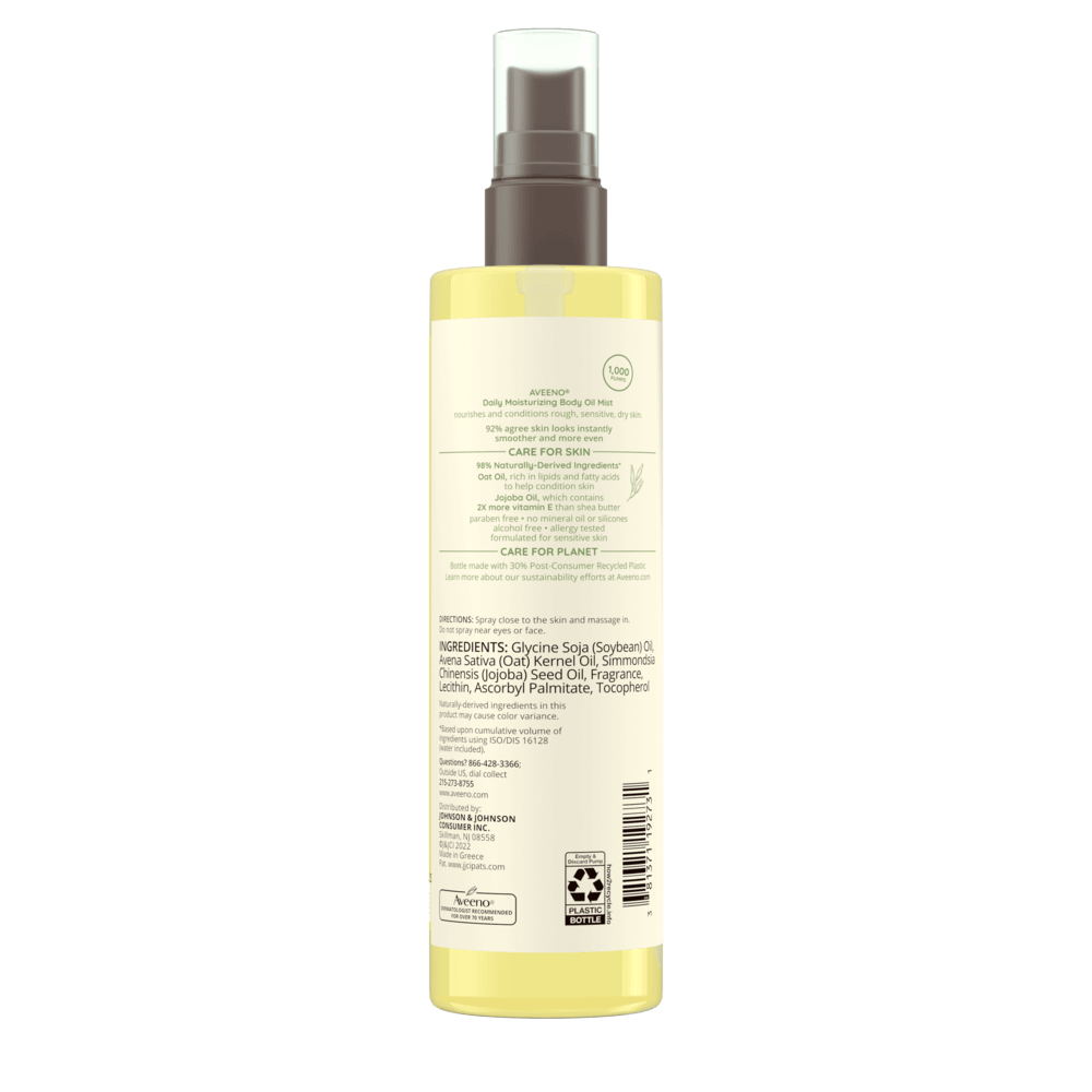 Enjoy smoother, more even skin in one week with this moisturizing oil mist. This body oil spray contains 98% naturally-derived ingredients*. With oat oil and jojoba oil, this oil mist nourishes and conditions rough, sensitive, dry skin.