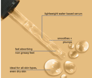 - Water-based serum absorbs quickly, allowing you to layer a moisturiser on top