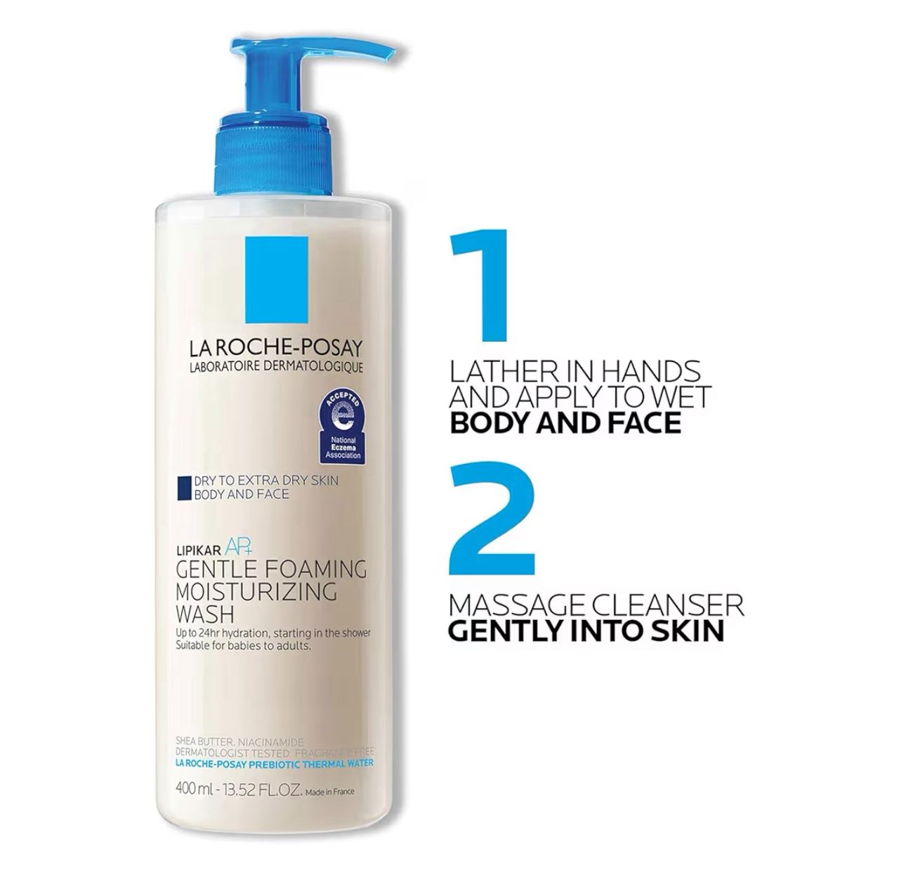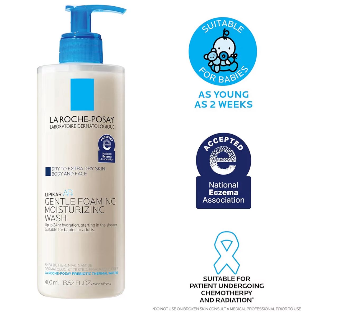Accepted by the National Eczema Association. This face & body wash for eczema is suitable for babies as young as 2 weeks, children & adults. From the #1 Body Care Brand in European Pharmacies.*