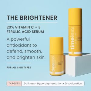 Timeless Skin Care Vitamin C Serum with Vitamin E & Ferulic Acid – 20% Vitamin C Brightening Serum – 1 oz