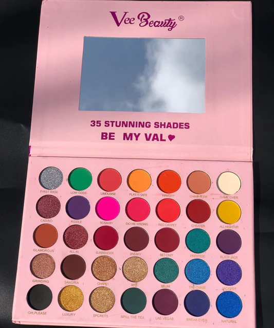 Explore 35 sweet shades and create infinite looks with the Vee Beauty Be My Val Eyeshadow Palette ranging from the most subtle to the most glamourous.