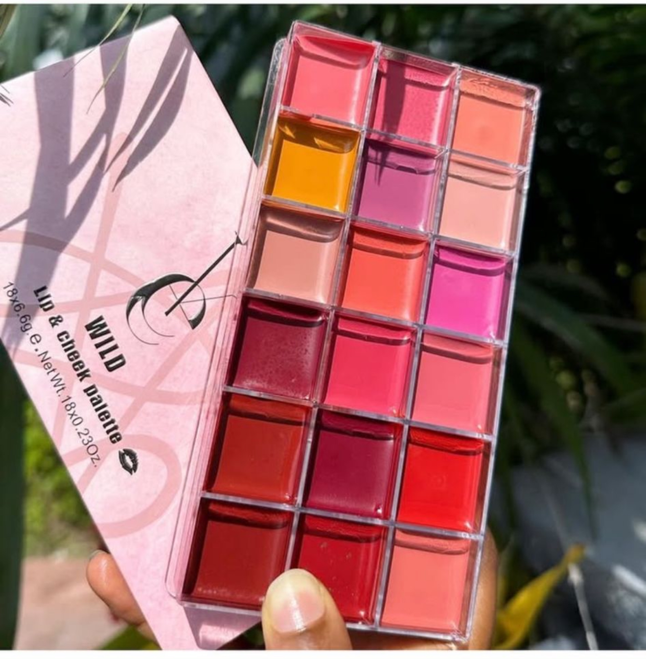Create cohesive makeup looks with the 18-colour Vee Beauty Wild Lip & Cheek Palette which doubles as a lipstick and blush palette, with an array of vibrant and neutral shades.